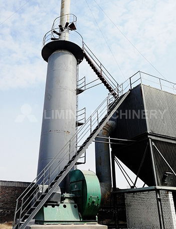 L'air de combustion est soufflé dans le fond du four par des soufflantes Roots, tandis qu'un ventilateur à tirage induit crée une légère pression négative (environ -10 Pa) au sommet du four, assurant un flux d'air régulier et une calcination stable. Les gaz de combustion sont traités par dépoussiérage et purification avant d'être rejetés dans l'atmosphère par la cheminée, conformément aux normes en vigueur.