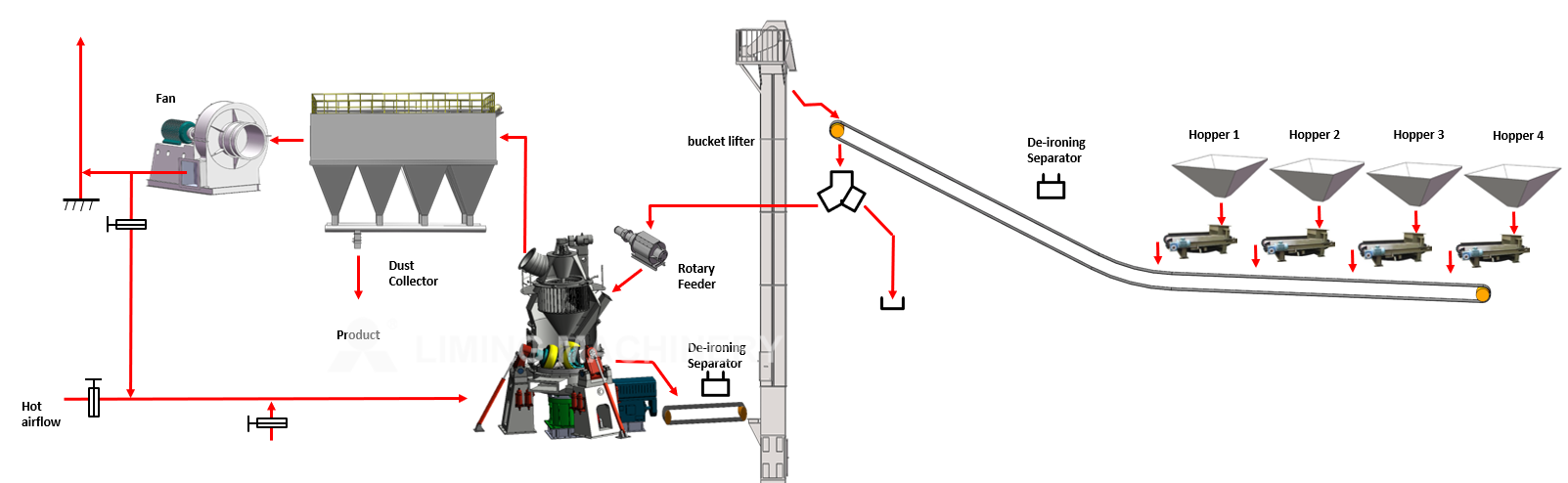 En raison de la composition complexe, de la teneur élevée en humidité et des différences significatives dans la broyabilité des matières premières, Liming Machinery a passé plus de vingt ans à développer l'équipement de broyage à économie d'énergie LMR, intégrant le séchage, le broyage, le calibrage et le transport. Cet équipement présente de nombreux avantages, tels qu'une efficacité de broyage élevée, une faible consommation d'énergie, une grande taille des particules d'alimentation, une finesse du produit facilement réglable, un processus simple, un faible encombrement, un faible niveau sonore, de faibles émissions de poussière, une utilisation et une maintenance faciles, de faibles coûts d'exploitation et une faible consommation de matériaux résistants à l'usure. Les performances globales du produit atteignent des niveaux avancés à l'échelle internationale, répondant aux besoins du broyage industriel à grande échelle, intelligent et intensif. La capacité de production maximale peut atteindre 550 t/h, répondant ainsi aux besoins d'approvisionnement en matières premières des lignes de production de ciment d'une capacité de 200 à 2500 t/j.